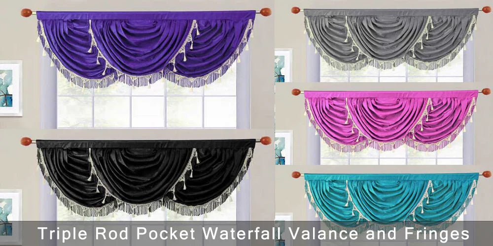 Triple Rod Pocket Waterfall Valance and Fringes in size 54"Wide X 18"Long (#849)