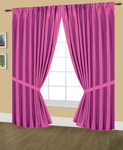 Elaine Faux Silk Pinch Pleated Lined (LIGHT FILTERING) Drapes Triple Width with Tie Backs & Hooks, available in 3 sizes (144x63, 144x84, 144x95) and in 24 colors.