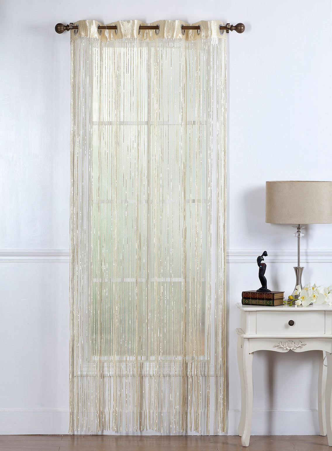 Andrea is a Shinny String Panel with 8-Top Grommets.