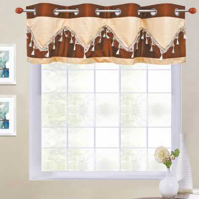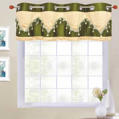 Dyed Double Festoon with 8-Top Grommets and bottom with lace and fringes.